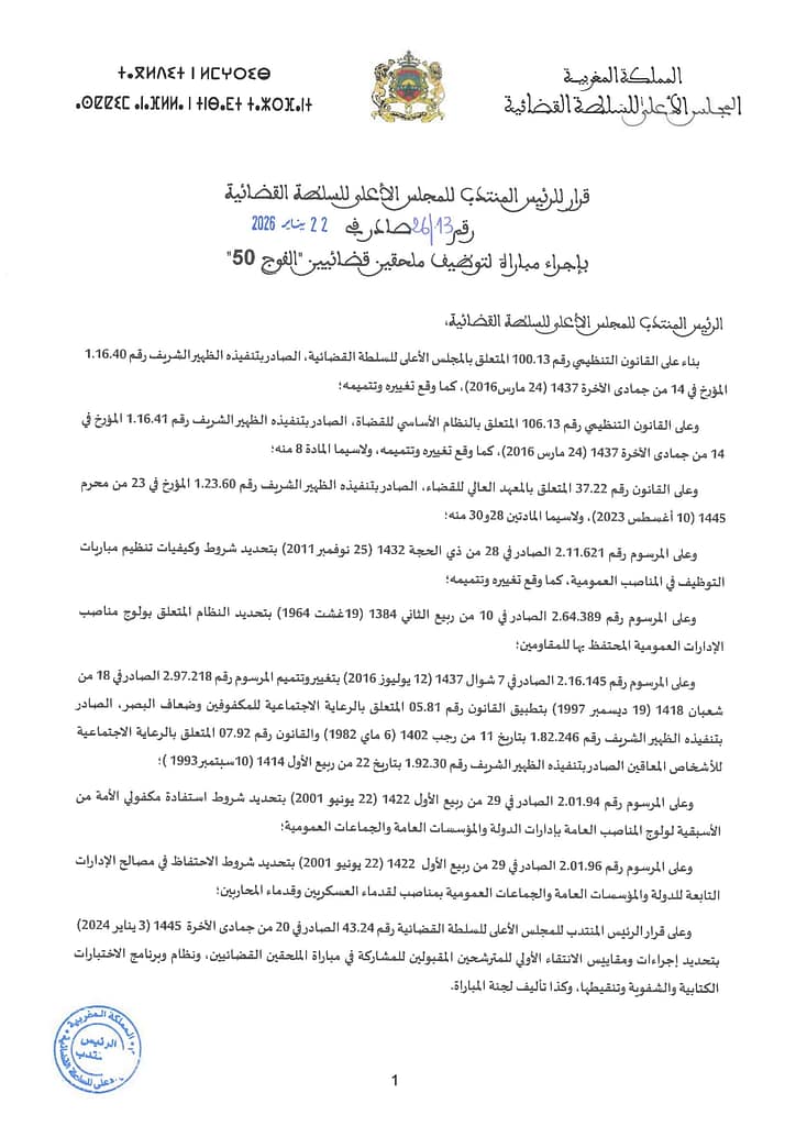 رابط التسجيل في مباراة المجلس الأعلى للسلطة القضائية 2026: