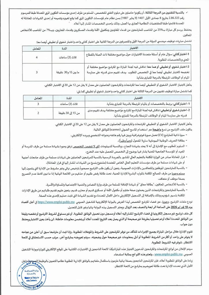 للمشاركة في مباراة توظيف وزارة الصناعة والتجارة: