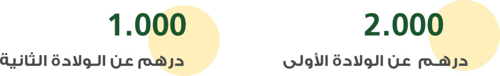– منحة الولادة بقيمة 2000 درهم للولادة الأولى و1000 درهم للولادة الثانية